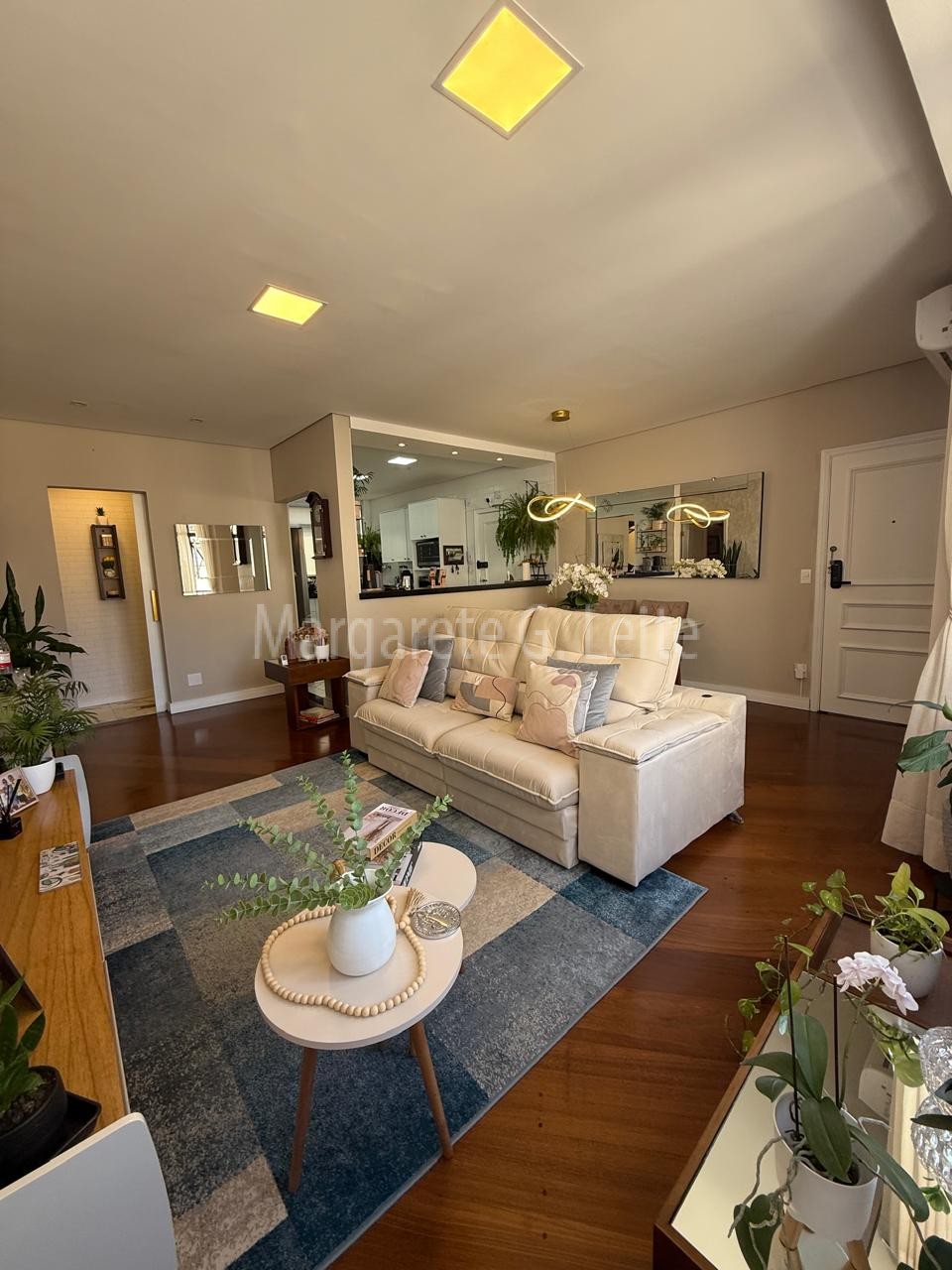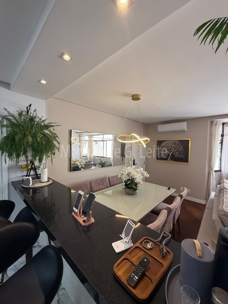 • Sala para dois ambientes ampla  em piso em taboa de ipê com ar condicionado splith com vista lateral para o mar