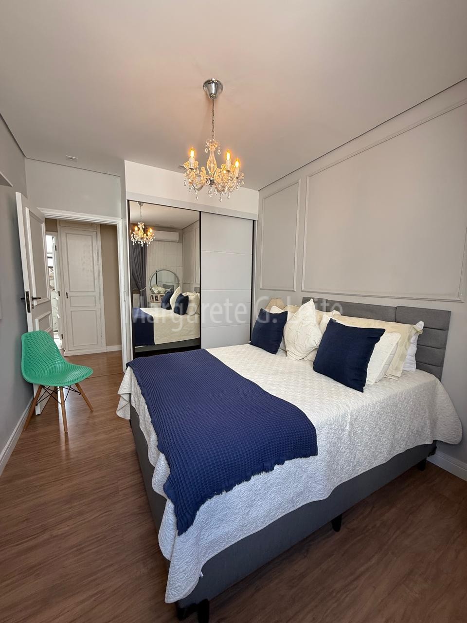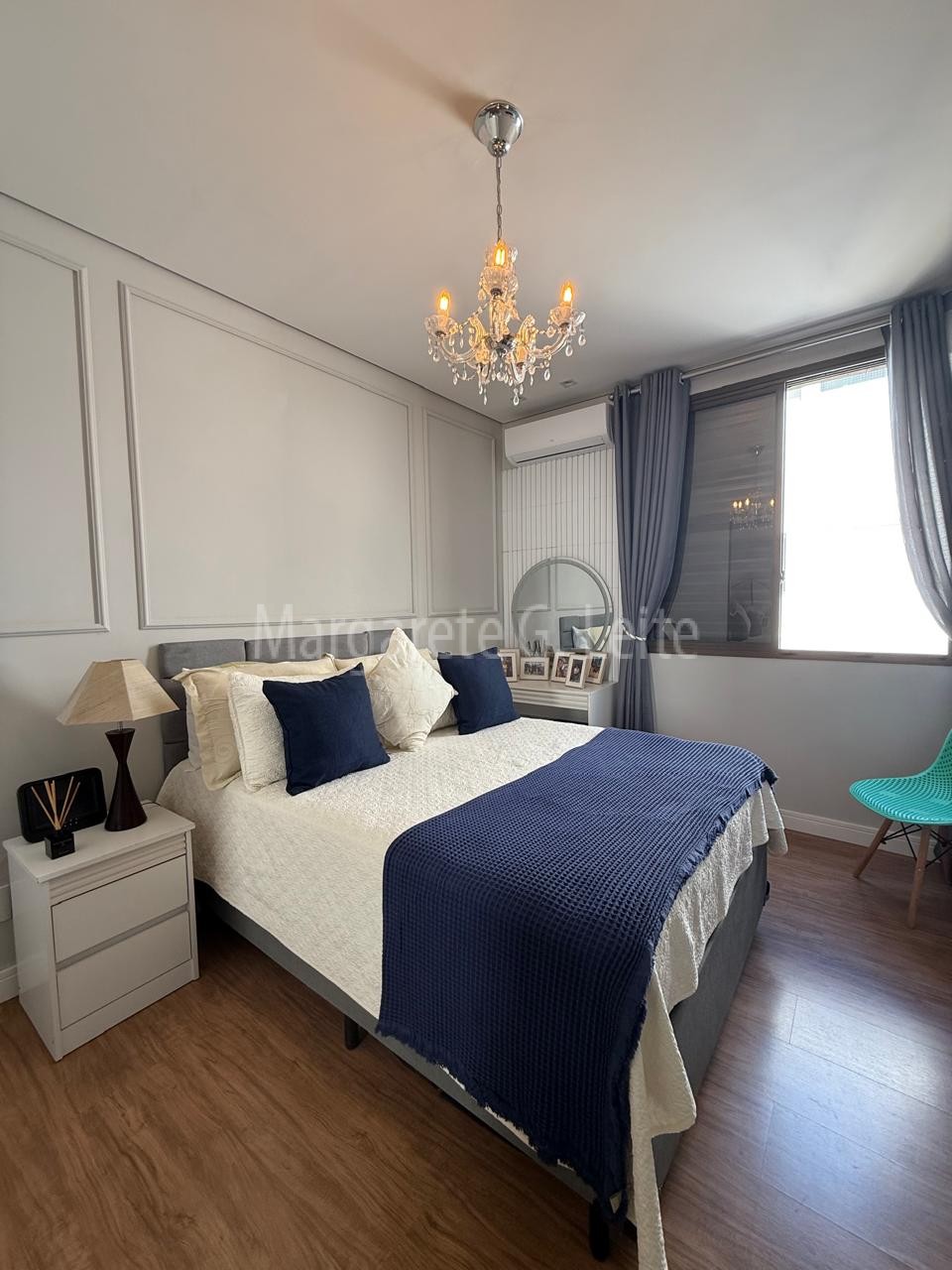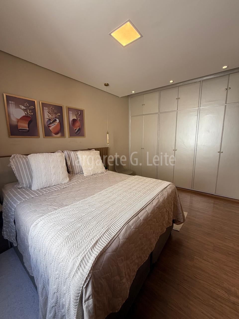 • Três dormitórios sendo uma suíte com armários  brancos piso laminado de madeira ar condicionado splith