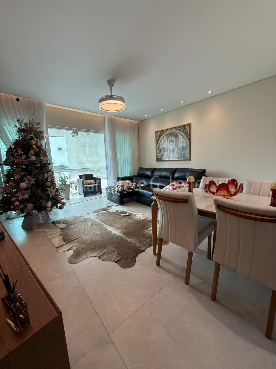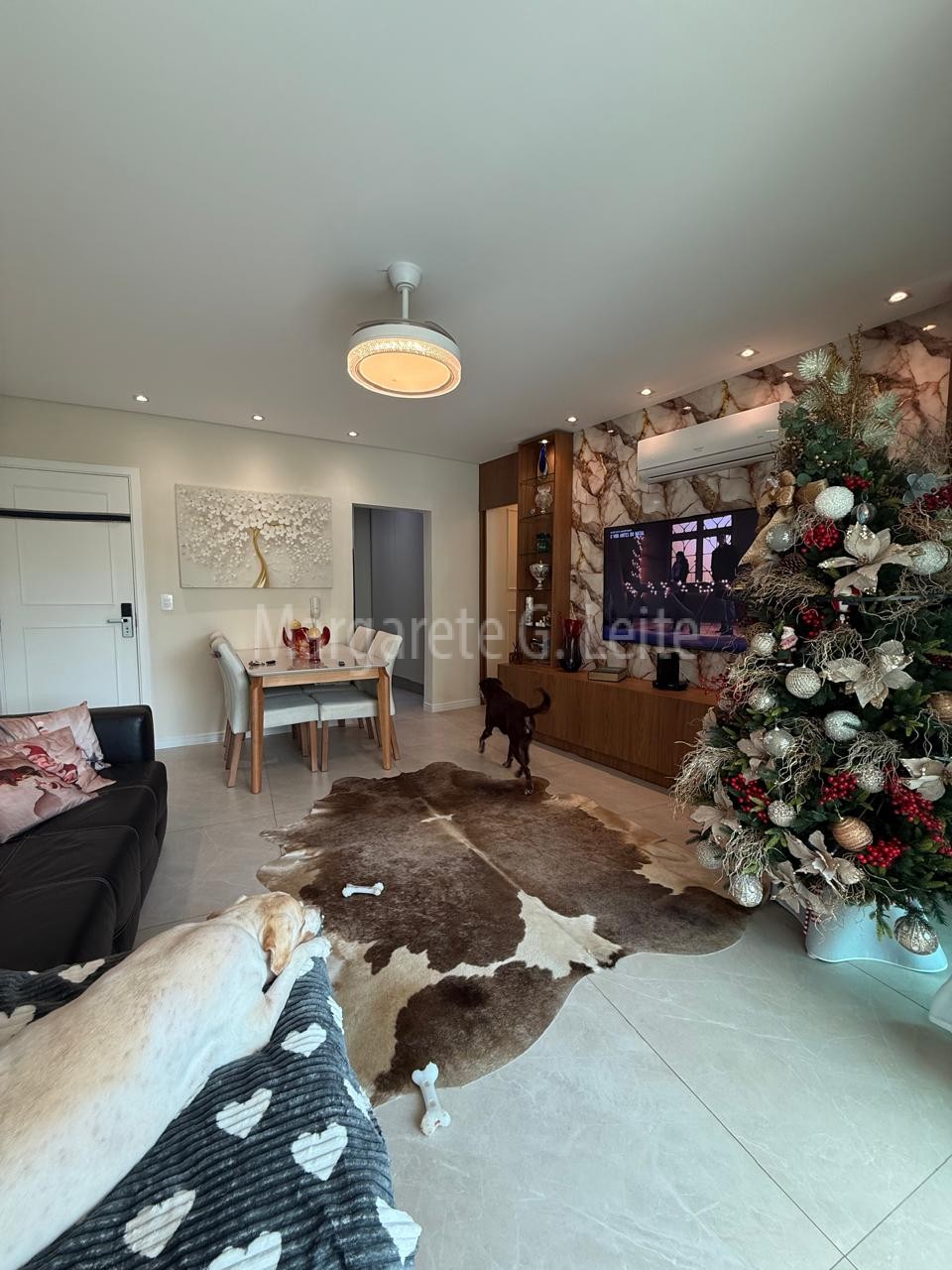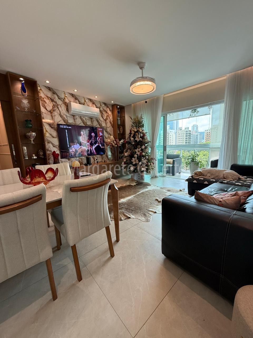- Sala para dois ambientes em piso porcelanato com ar condicionado splith