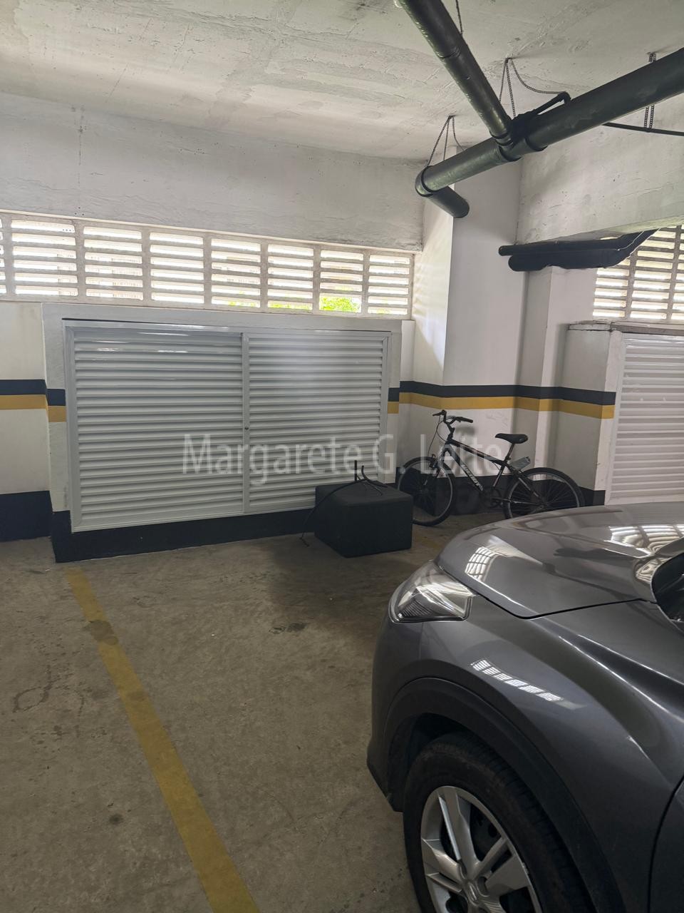 - Duas garagens coletiva privativas no mezanino dois bem ao lado do elevador social com armário fechado em alumínio