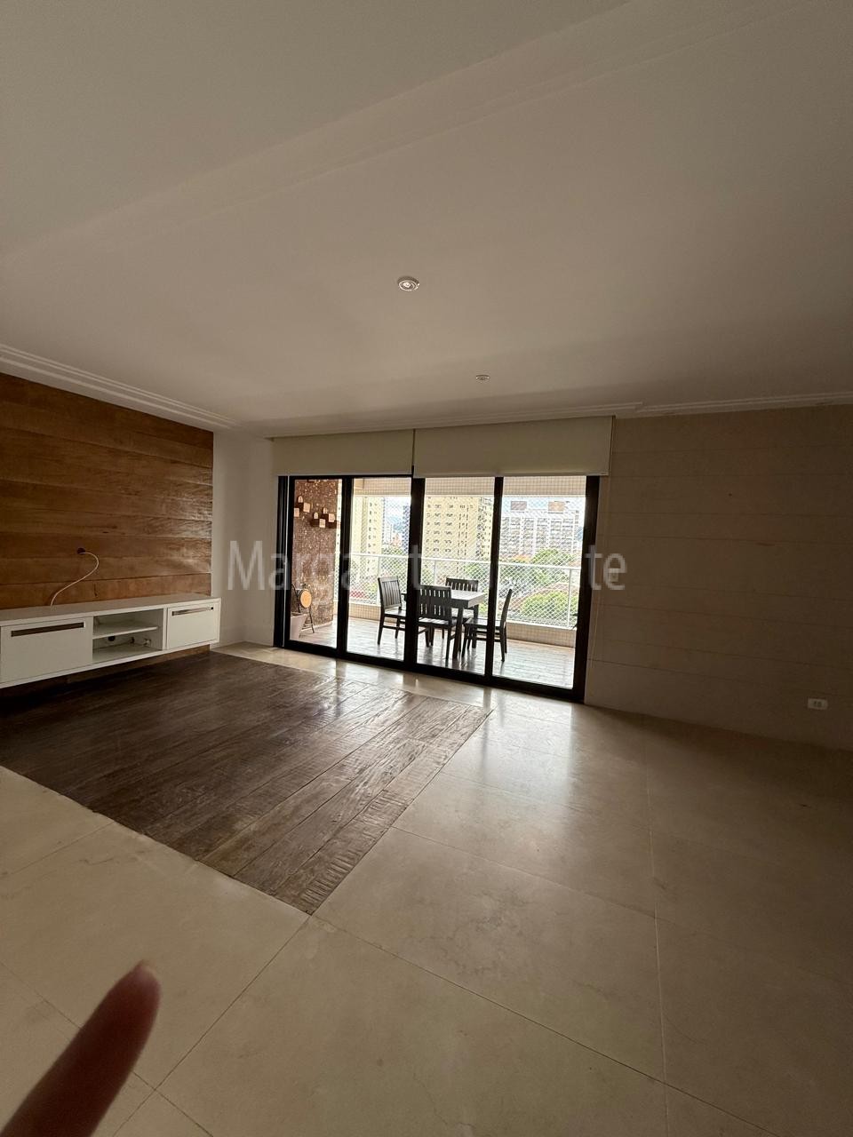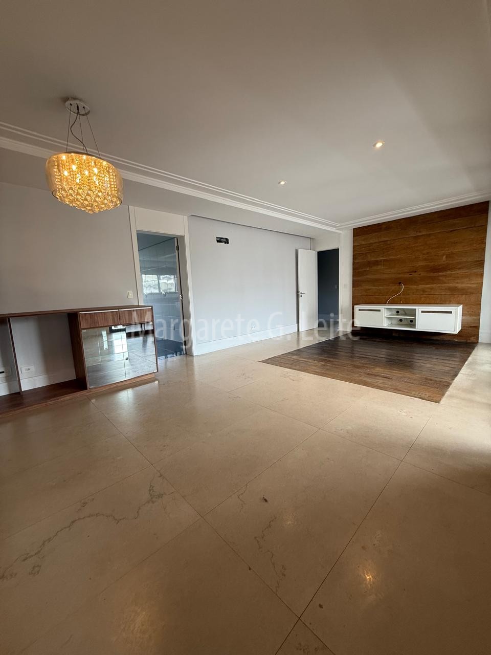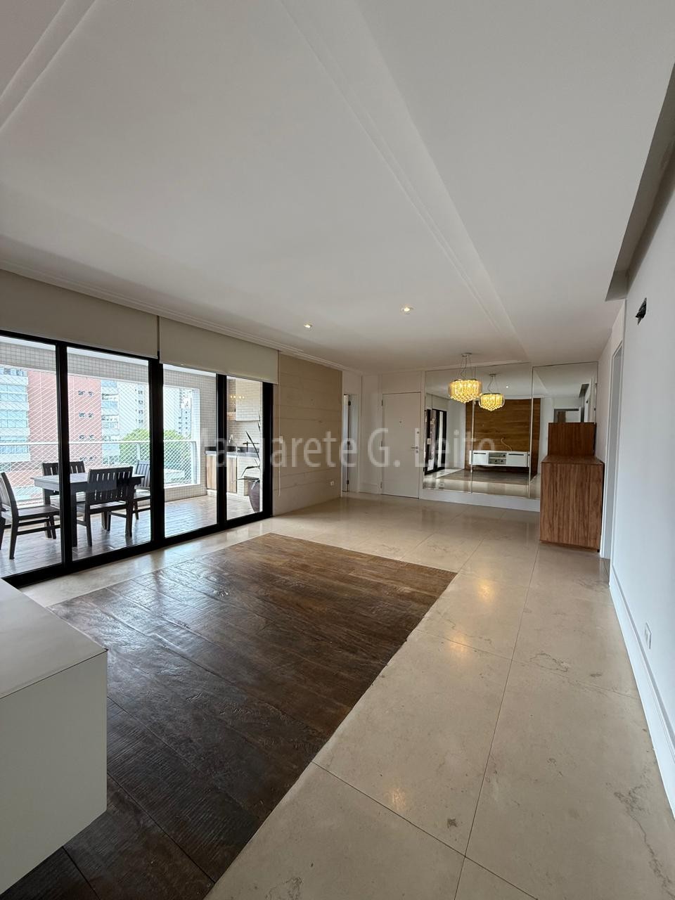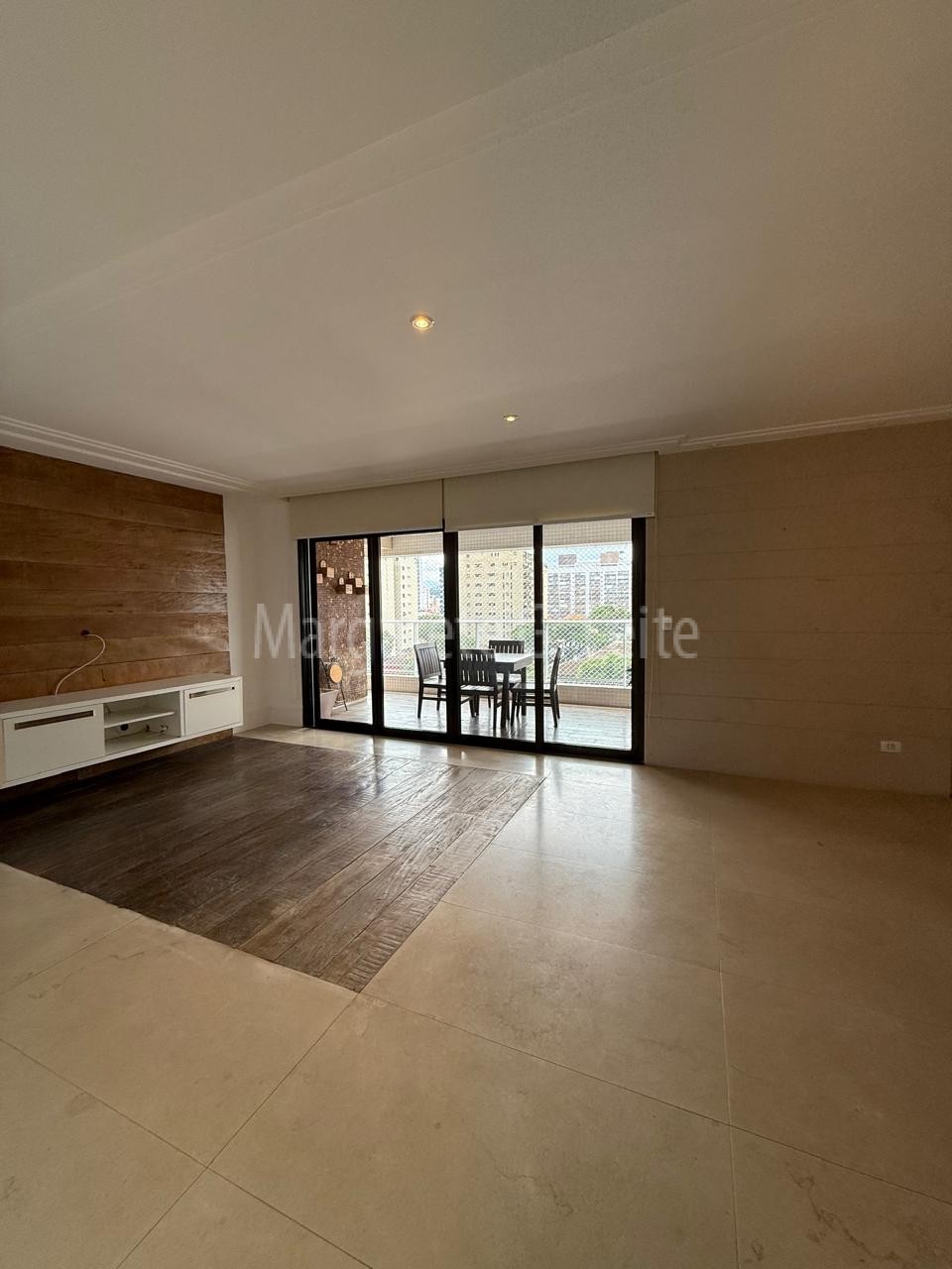 • Sala para dois ambientes ampla  em porcelanato e Taboa Ipê